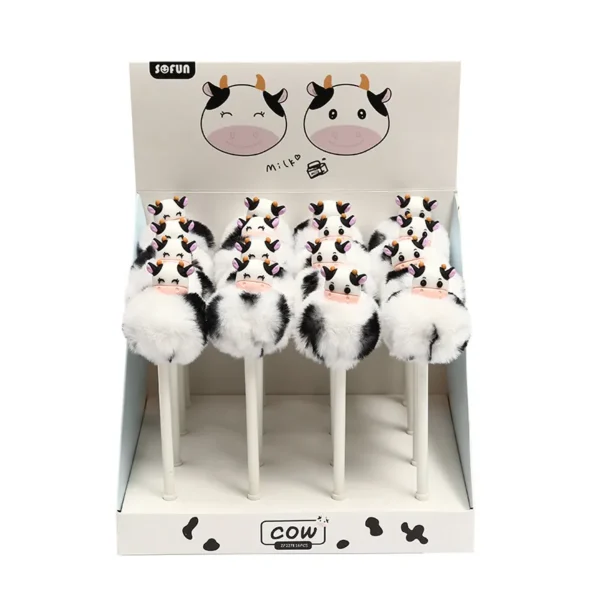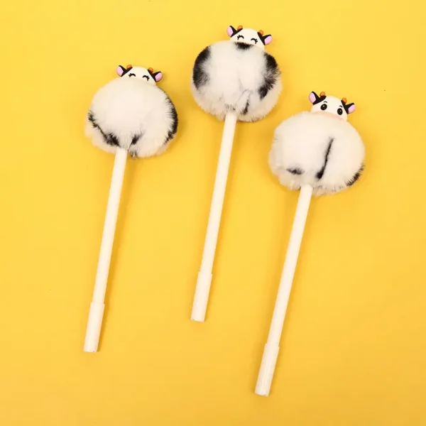 Caneta Fofa Kawaii de Vaquinha com Pompom