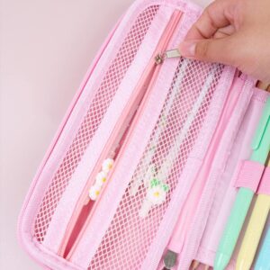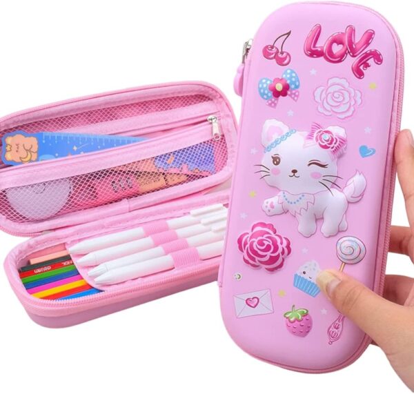 Estojo grande capacidade: o estojo de lápis pode manter seus pequenos itens no lugar, e a capa inferior espaçosa pode armazenar lápis e outros itens, como borrachas, apontador de lápis e assim por diante.