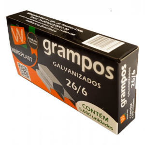 Grampos Galvanizados 26/6, caixa com 5.000 grampos.