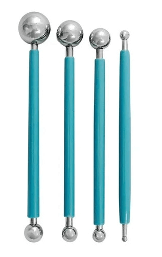 Contém: 04 Boleadores com 02 Pontas Cada. Diâmetros: 04/06mm 07/08mm 10/11mm 15/17mm Boleador com duas pontas esféricas de que permitem fazer trabalhos em: – Biscuit – Alto-relevo relevo em papel – Uso em EVA – Scrapbook – Decoupagem – Efeito 3D- – Modelagem em porcelana fria – Massa de biscuit – Pastilhagem para massa Ótima para fazer modelagem de flores Comestíveis e personagens diversos