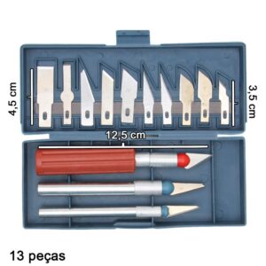 Kit de Estilete de Precisão Lanmax LM-KEP-13 Contém: 13 Peças Estilete profissional para trabalhos manuais e artesanatos. Ideal para uso em artes, desenhos, aplicações industriais e qualquer outra aplicação que necessite um corte preciso.