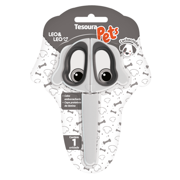 A Tesoura Pets com formato cachorrinho é super fofa e divertida, possui cabo emborrachado, capa protetora, ponta redonda e lâmina em aço inox.